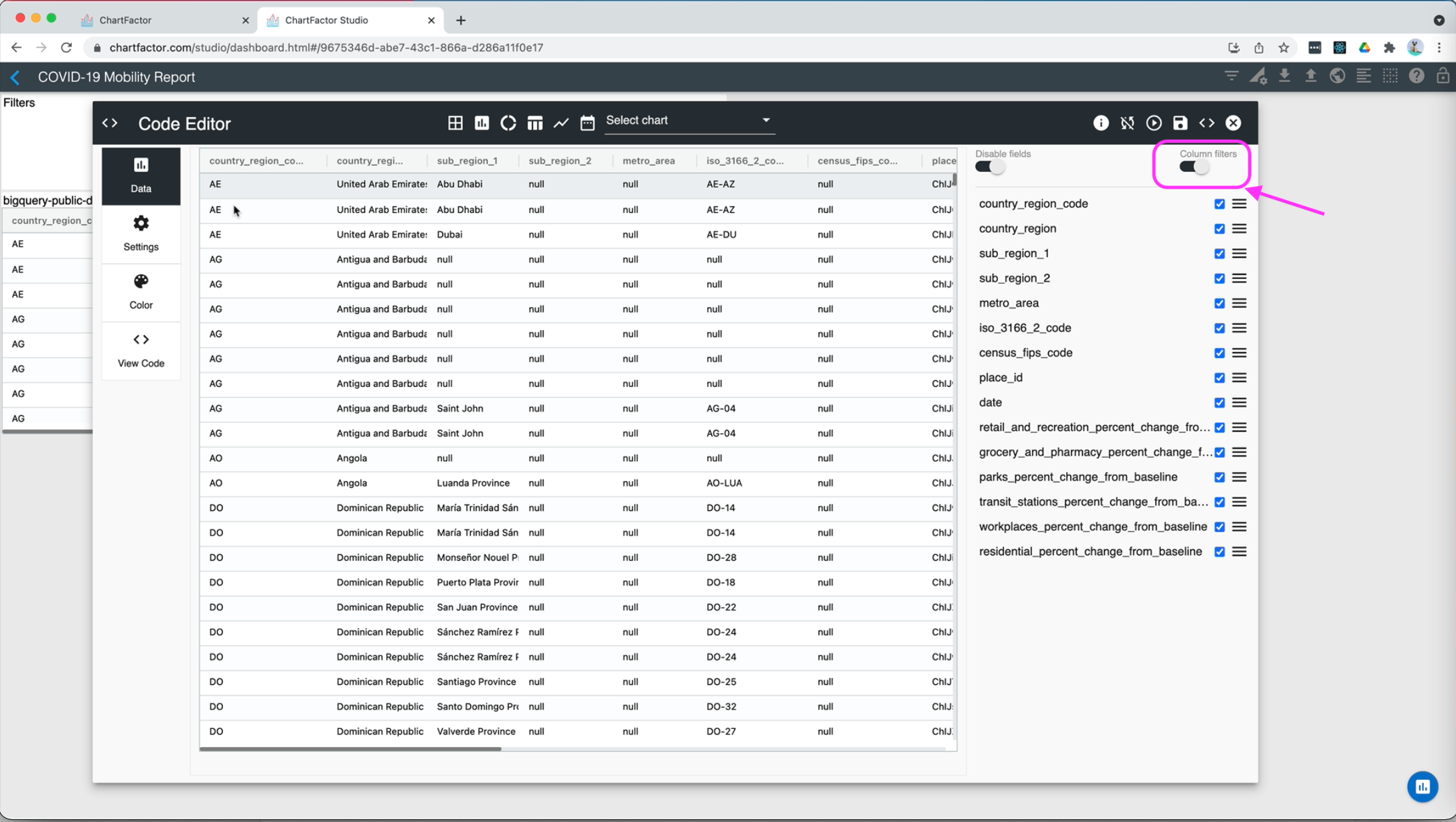 This quick tutorial shows you how to create a web data application to visualize COVID-19 Mobility Report data provided by Google BigQuery. If you don’t have a Google Cloud account, you can easily create your BigQuery account without a credit card.