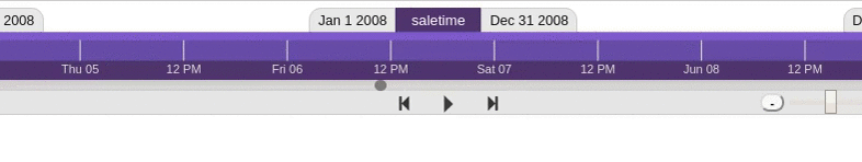 The Time Slider (TS) allows users to filter data based on time windows. It also allows to play data by fixed time frames providing a better vision on how the data changed over time.
