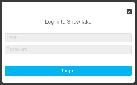 When credentials are not specified statically, the Snowflake provider renders a modal for users to enter their credentials as shown below. This second method works only on web browsers and desktop applications.