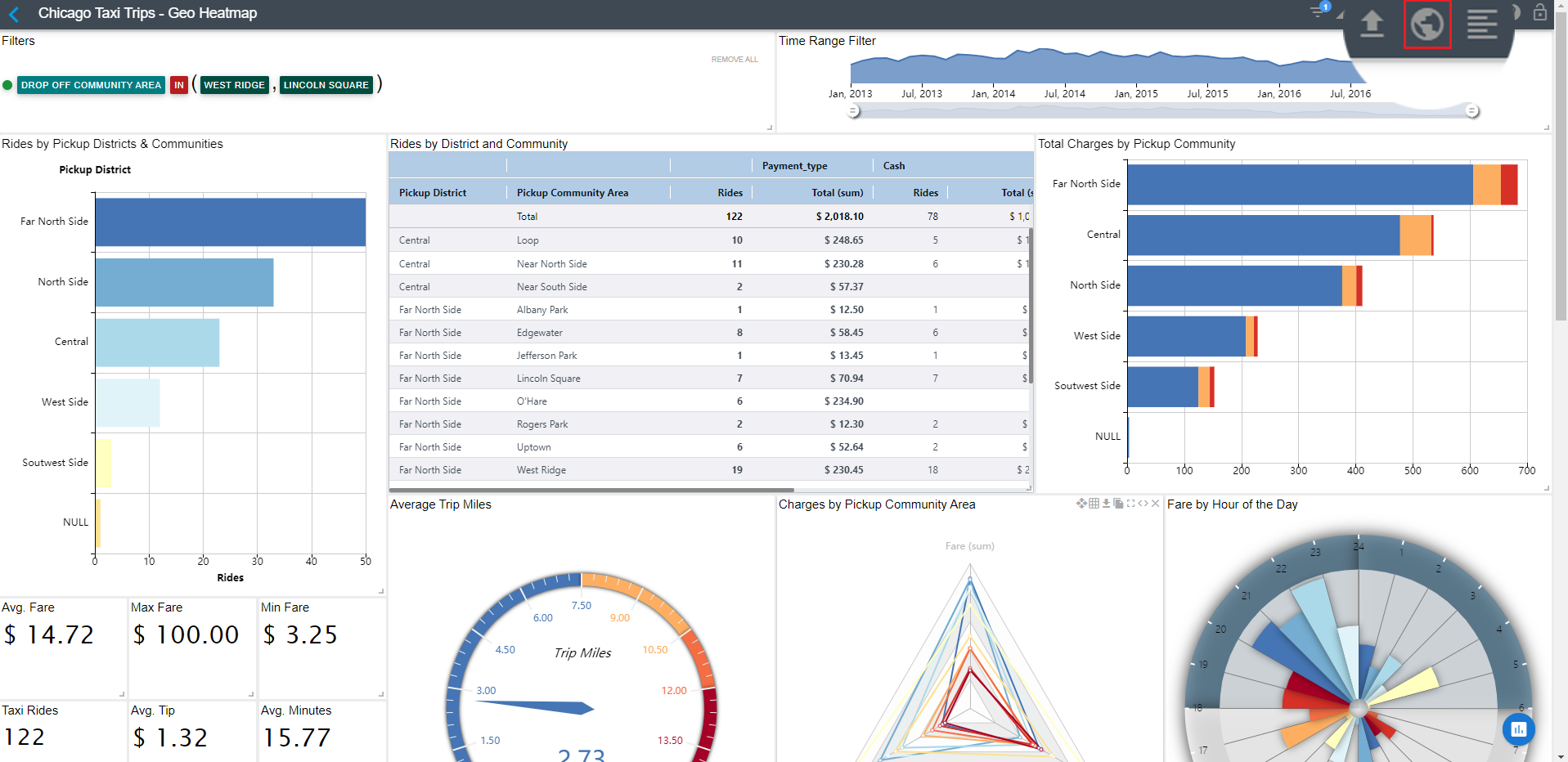 When generating a web app from the Studio dashboard page, select the Generate Web App function on the top right corner of the ChartFactor Studio dashboard page.