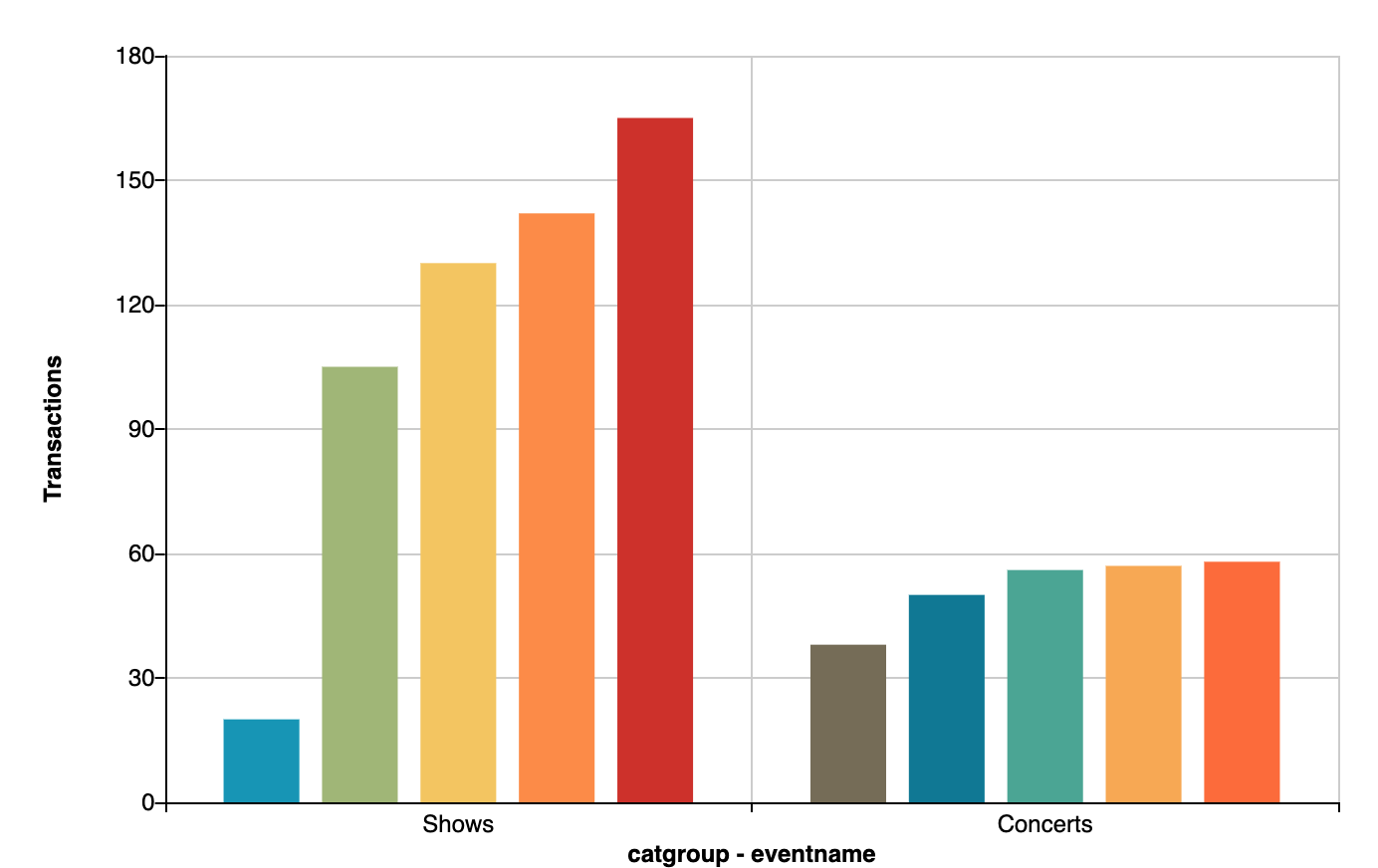 Notice now that the third metric "venueseats" is only visible from the tooltip but no bar section was created for it.